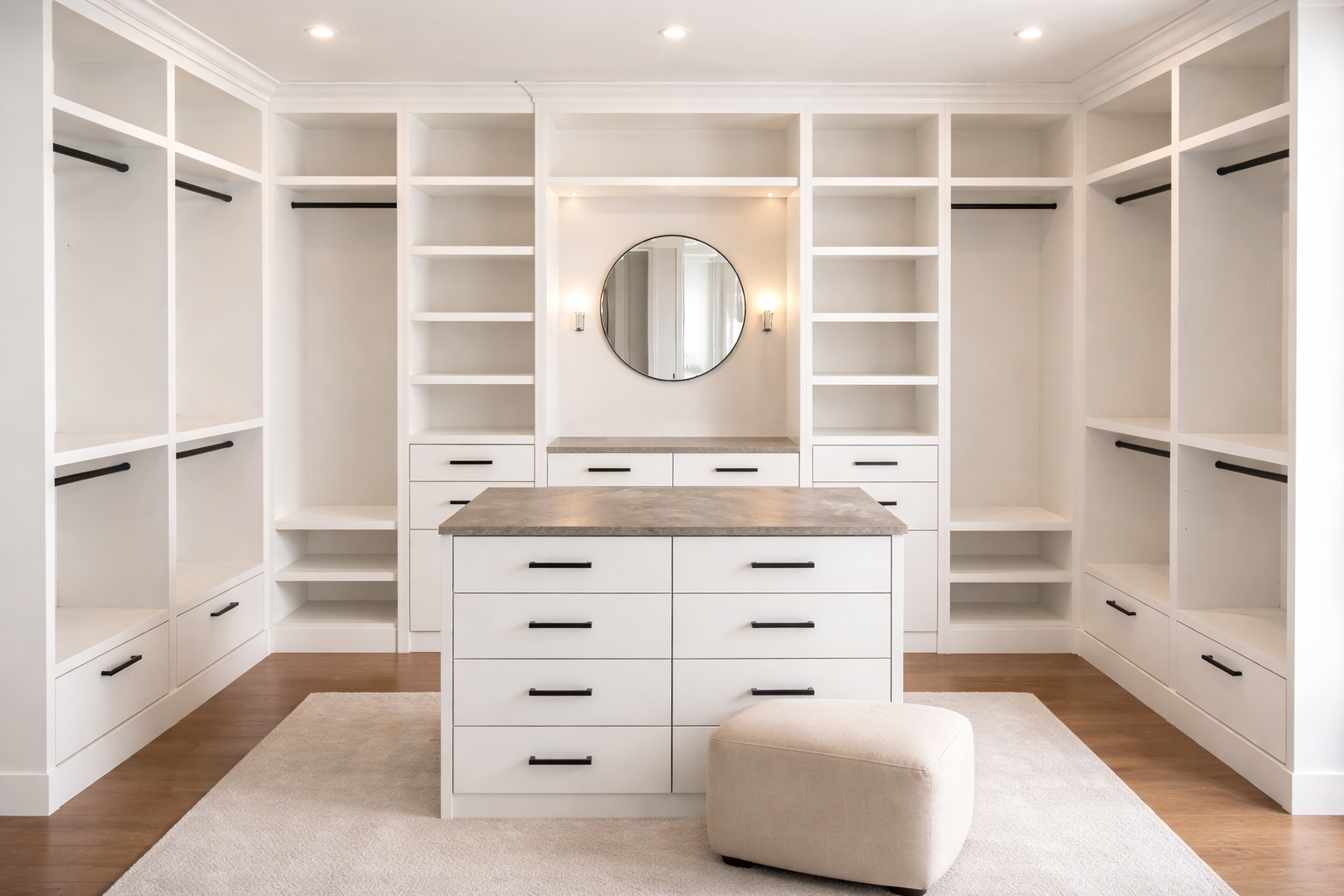 Walk-in and reach-in closets designed for clothing, shoes, accessories and everyday comfort.