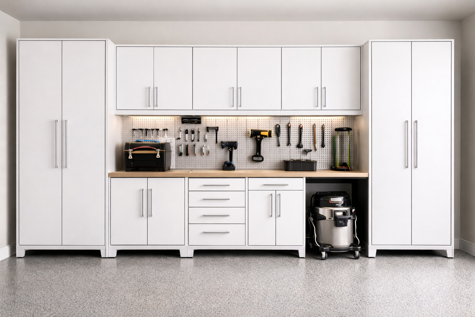 We create garage storage for your convenience and suitable for you tools, according you space. We can make special bottom boards for long life you cabinets